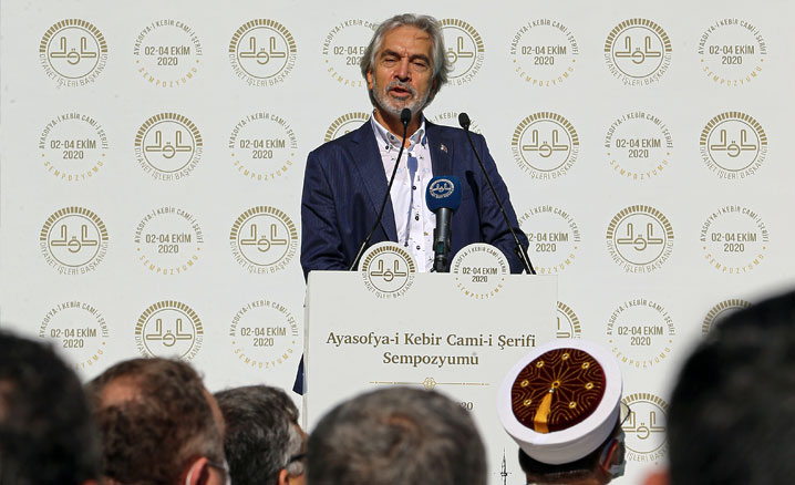 Diyanet İşleri Başkanı Prof. Dr. Ali Erbaş, Ayasofya-i Kebir Cami-i Şerifi avlusunda düzenlenen Ayasofya-i Kebir Cami-i Şerifi Sempozyumu'nun açılış konferansında konuştu.