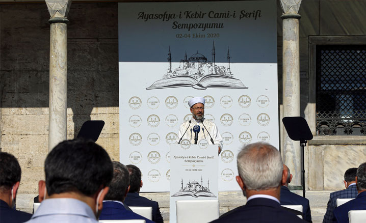 Erbaş, Ayasofya-i Kebir Cami-i Şerifi avlusunda düzenlenen "Ayasofya-i Kebir Cami-i Şerifi Sempozyumu"nun açılış konferansında konuştu.