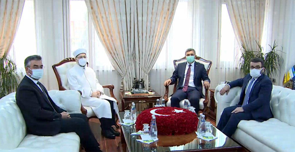 Valilik ziyaretinde konuşan Başkan Erbaş, Berat Gecesi programı için Batman'da olduklarına vurgu yaparak, "Ülkemizin en güzel şehirlerinden, maddi ve manevi kalkınmanın en büyük örneklerinden birisi olan Batman şehrinde bulunmaktan duyduğum memnuniyeti özellikle ifade etmek istiyorum. Berat Gecesi münasebetiyle inşallah mevlit programını burada yapacağız. Bu vesileyle buradayız. Cenab-ı Hakk bütün milletimizin ve İslam alemininin Berat Gecesi'ni mübarek eylesin. Bu vesileyle Valliğimizi ziyaret etmiş olduk. İnşallah din görevlilerimizle salgın tedbirlerine uyarak bazı istişareler yapacağız." dedi.