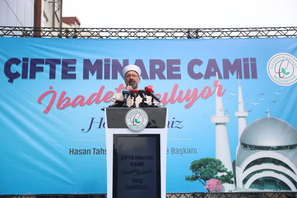 Başkan Erbaş, açılışının gerçekleştirilmesinin ardından camiye geçerek Cuma hutbesi irad etti ve Cuma namazı kıldırdı.
