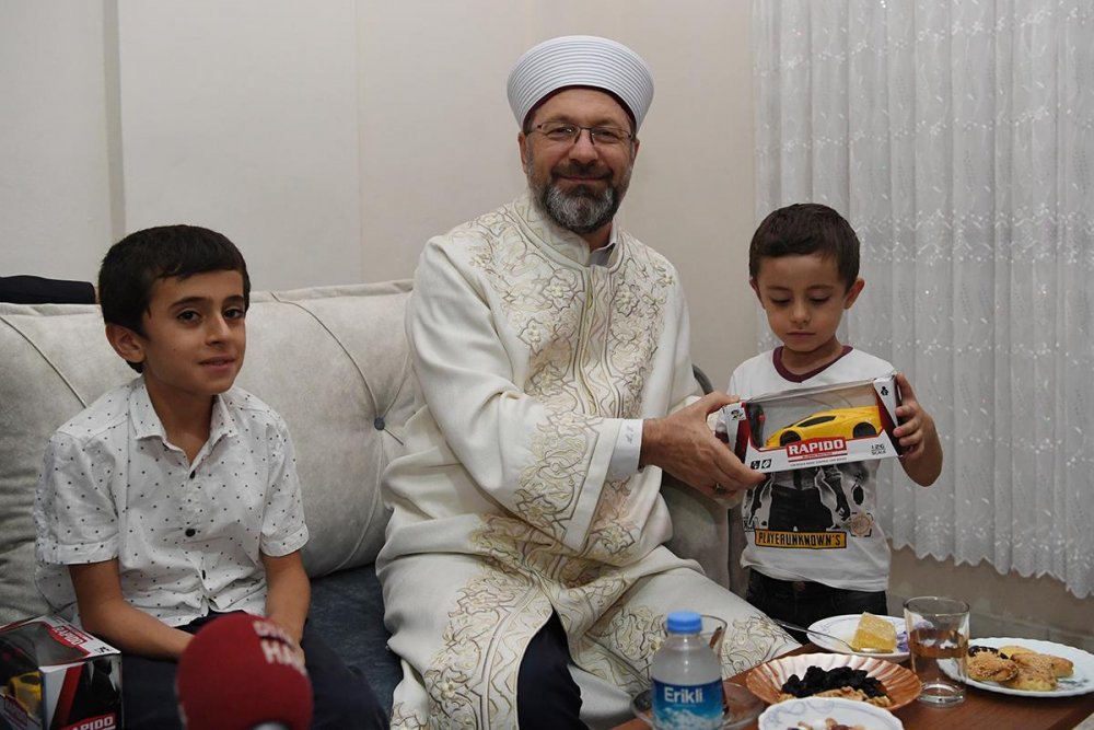 Başkan Erbaş, Buğutekin'e sarık - cübbe, çocuklara da çeşitli oyuncaklar hediye etti.