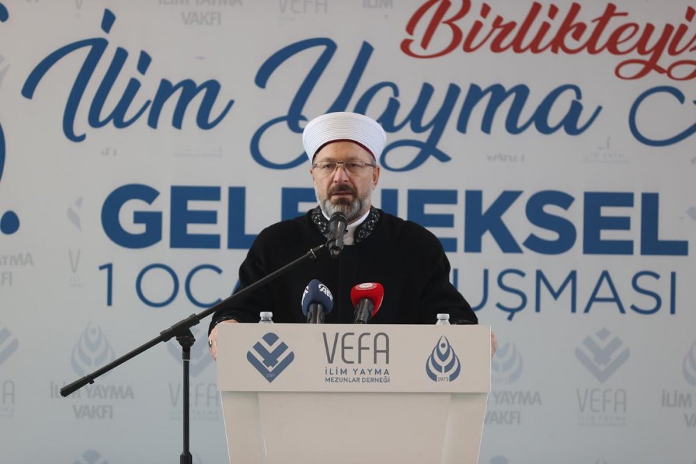 “Yurtların ve yurtlarda kalan öğrencilerin sayısı arttıkça, 1951 yılında ve daha sonrası bu davaya gönül verip de ahirete irtihal etmiş olan o büyüklerimizin ruhları şad oluyor. İlim Yayma yurdu bizim için ikinci bir üniversite olmuştu. İlim Yayma yurdunun mescidinde okuduğumuz dersler bizim için ikinci bir fakülte olmuştu. Türkiye Diyanet Vakfı olarak yurt, burs, kurs şeklinde yurdumuza gelen her çocuğa 4 yıllık program yapıyoruz. Yurtta kaldığı süre içerisinde 4 yıl boyunca diğer bir programı yurt programını da devam ettiriyor. İlim Yayma’da da böyle olduğunu biliyorum. Yurtlar bir otel odası gibi değil, bir üniversite, fakülte gibi kullanılsın düşüncesiyle hareket ettiğimizde gençlerimizin daha iyi yetişmesine katkı sağlıyoruz. Bütün yurtlarımız eğer bu şekilde olursa gençlerimizin daha nitelikli yetişmesine vesile oluruz.”