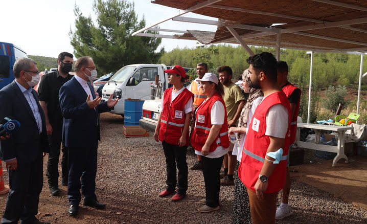 İçişleri Bakanı Süleyman Soylu, Tarım ve Orman Bakanı Dr. Bekir Pakdemirli ve Enerji ve Tabi Kaynaklar Bakanı Fatih Sönmez ile görüştüğünü belirten Erbaş, “Onlar canla başla çalışıyorlar. Orman teşkilatımız tamamen alanda.” diye konuştu.