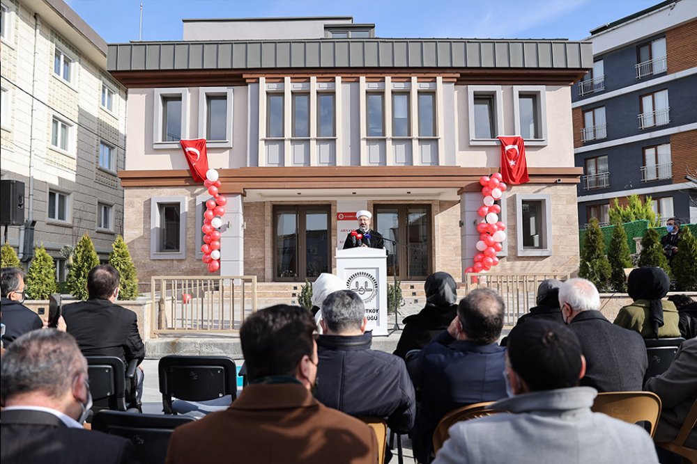 İstanbul Müftüsü Safi Arpaguş, Arnavutköy Belediye Başkanı Ahmet Haşim Baltacı ve vatandaşların katıldığı açılışta Başkan Erbaş, kurdele kesiminin ardından öğrencilere hediye verdi.