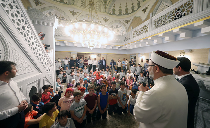 Daha sonra Başkan Erbaş, Trabzon’un Arsin ilçesindeki Hacı Hasan Eroğlu Camii’nde düzenlenen “Cuma Geceleri Ailece Camide Buluşuyoruz” etkinliği kapsamında, çocuklar, gençler ve vatandaşlar ile buluştu.