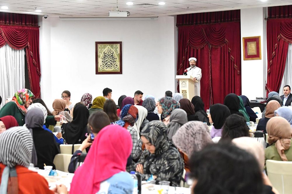 Erbaş, gençlere üniversitedeki dersleriyle yetinmeyip farklı alanlarda da okumalar yapmaları tavsiyesinde bulunarak, "Sadece fakülte dersleriyle yetinmeyiniz, farklı alanlardan da istifade ediniz. Kendinizi farklı alanlarda ne kadar yetiştirebilirseniz o kadar iyi olur. Ama her şeyden önemlisi iyilik yolunda, hayır yolunda, ahlaki ilkeler noktasında davranışlarımızı kontrol altına alacağız, iyilikte yarışacağız, kötülüklerden uzak duracağız ve hayatımızı Rabb'imizin rızasına uygun hale getireceğiz." değerlendirmesinde bulundu.