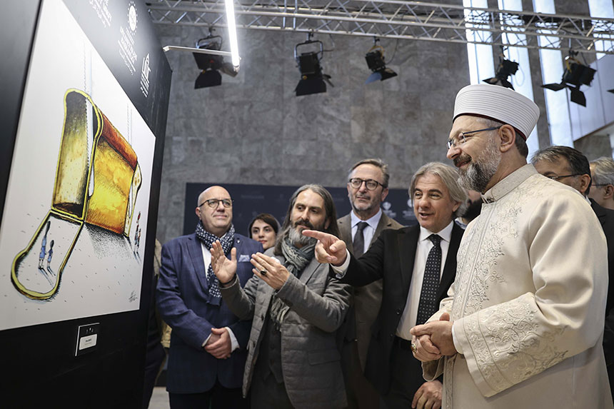 Dünyanın farklı ülkelerinden çizerlerin katıldığı sergide, "Ramazan, Doğruluk, Zekat" temasıyla üretilen eserlere yer verildi.