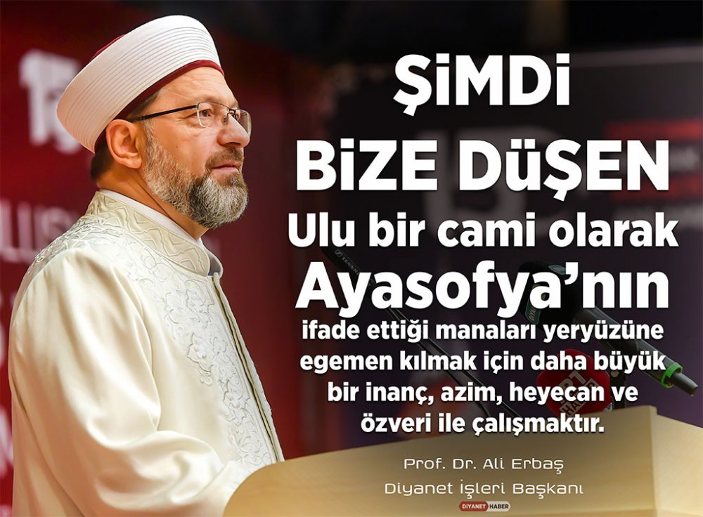 Diyanet İşleri Başkanı Prof. Dr. Ali Erbaş bu akşam A Haber televizyonunda saat 22.00'de "Ayasofya Cami Özel Yayını"na konuk olacak.