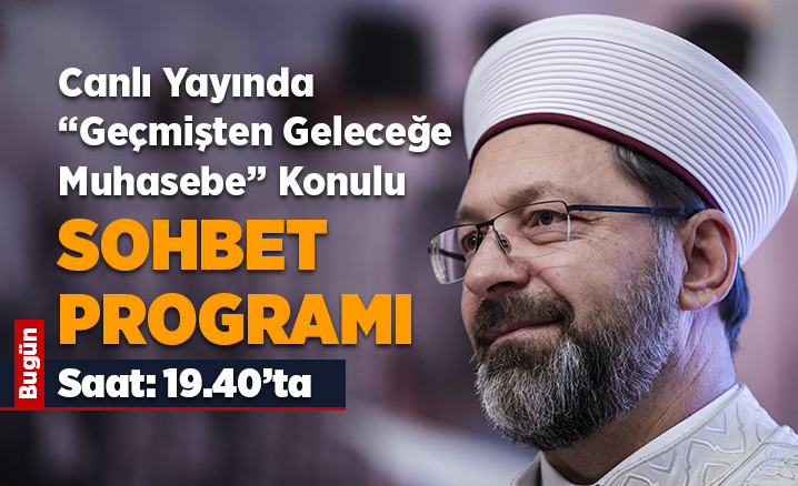 Diyanet İşleri Başkanı Prof. Dr. Ali Erbaş, bugün canlı yayında "Geçmişten Geleceğe Muhasebe" konulu bir sohbet parogramı yapacak.