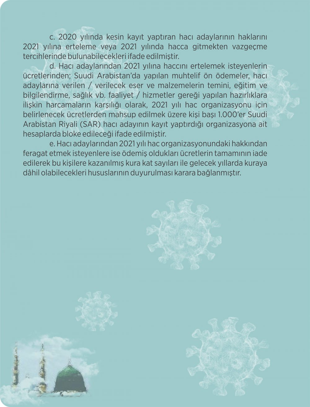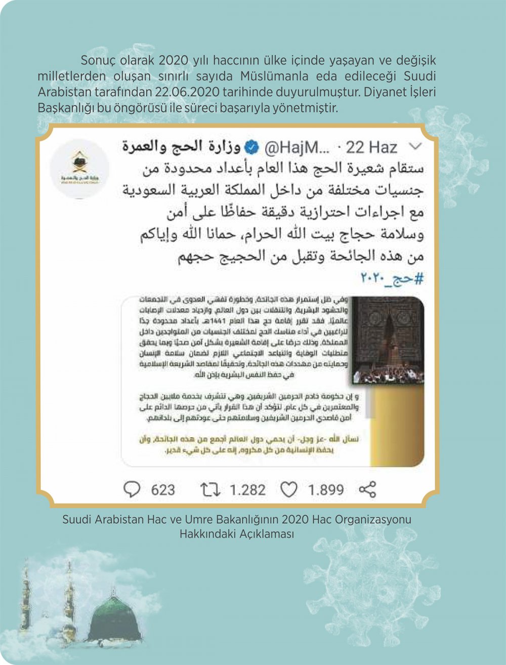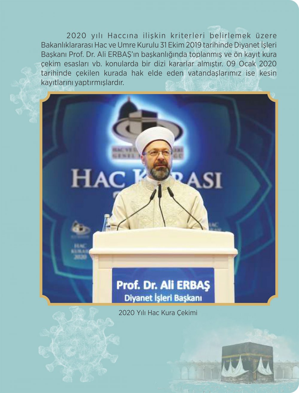 Diyanet İşleri Başkanlığı Hac ve Umre Hizmetleri Genel Müdürlüğünce "Pandemi Sürecinde Hac Organizasyonunda Alınan Tedbirler" isimli kitapçık hazırlandı.