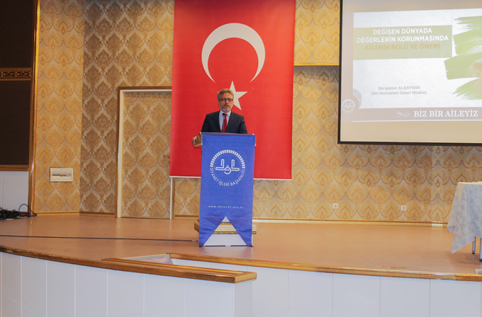 Din Hizmetleri Genel Müdürü Bünyamin Albayrak, aileyi ayakta tutan değerler olarak tanımladığı "sevgi, saygı, sadakat, samimiyet, sabır, sohbet” gibi kavramları açıklayarak konuşmasını sonlandırdı.