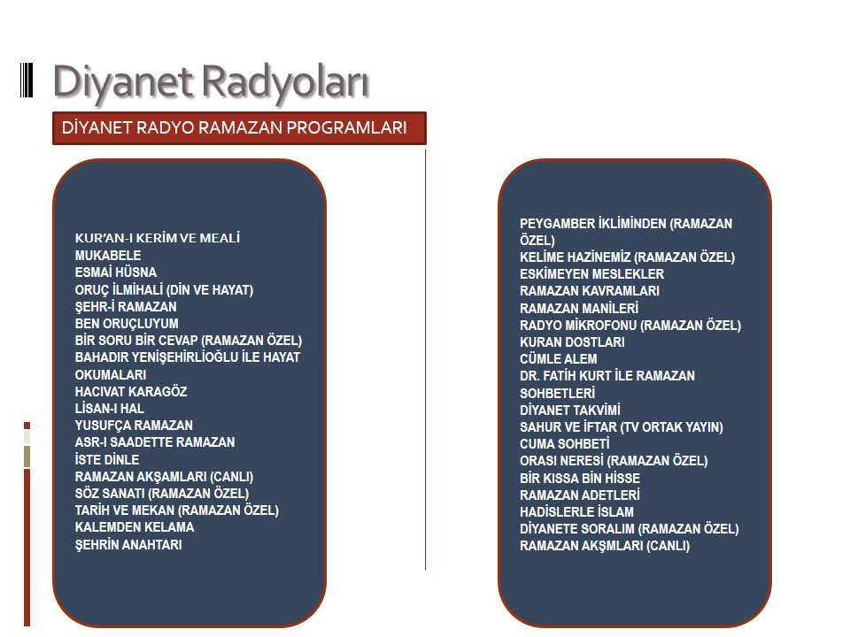İşte Diyanet Radyoları Ramazan 2019 program içerikleri: