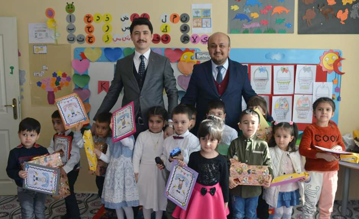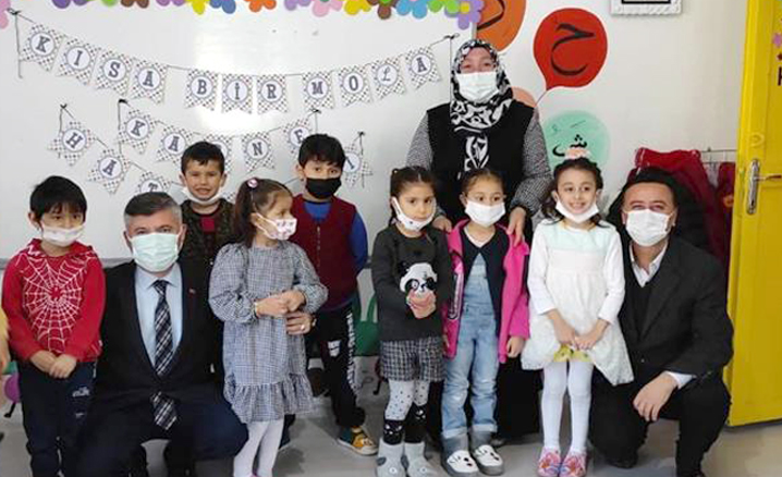 Miniklerle bir araya gelen İl Vaizi Rukiye Avcı, öğrencileri ziyaret ederek çeşitli hediyeler takdim etti.