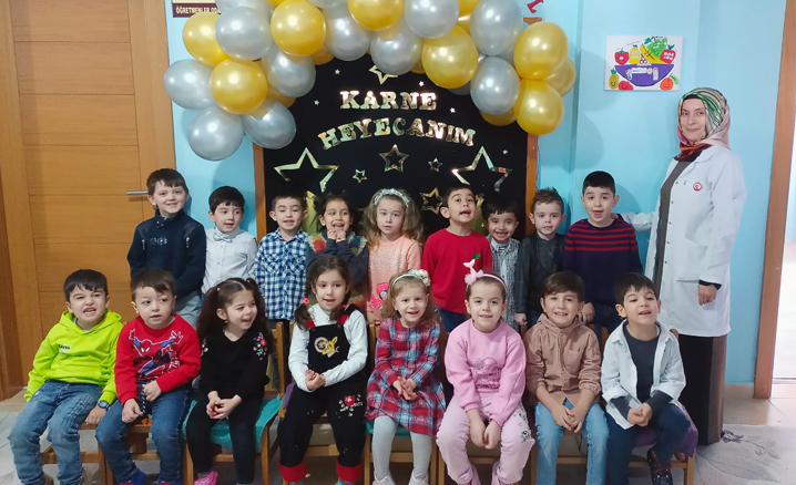 Öğrenciler, 2021-2022 yılı eğitim-öğretim dönemi ilk yarıyıl tatili karnelerini almalarının mutluluğunu yaşadı.