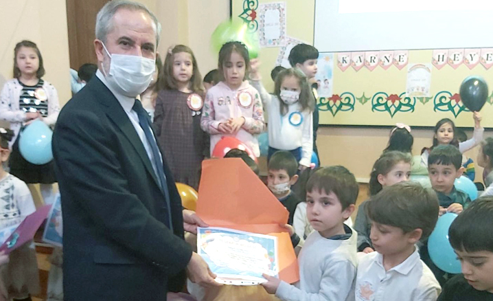 Miniklerin dua okuduğu program, Kaymakam Tayyib’in öğrencilere karne ve hediye takdimi ile sona erdi.