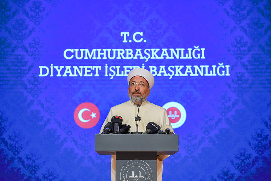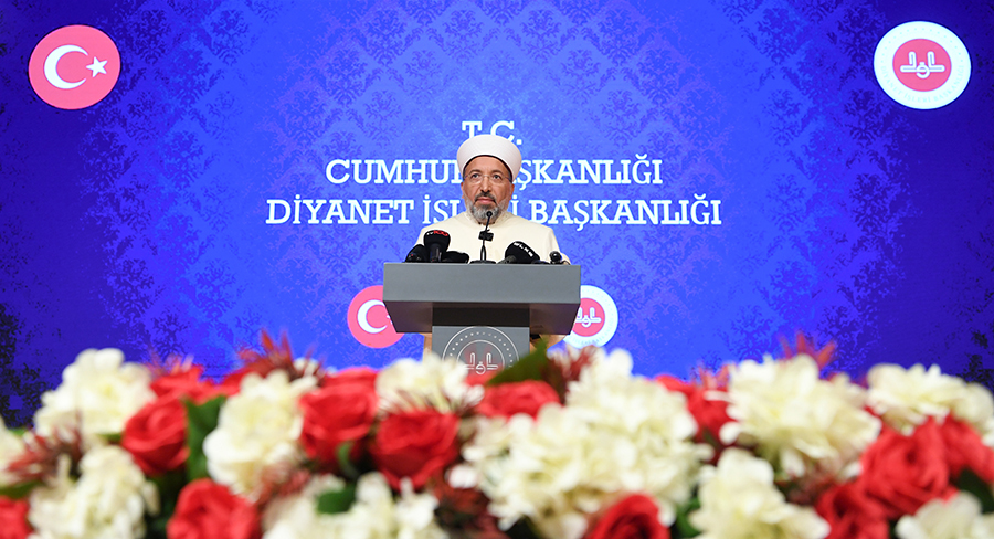 Din hizmetinin herhangi bir mevki, makam ve statüye bağlı olmadığını belirten Erbaş, "Bilakis kulluğumuzun bir gereği ve bizim için bir hayat tarzıdır. Dolayısıyla bu alanda son nefesimize kadar çalışmayı ihmal edilemez bir vazife olarak telakki etmeliyiz. Başlangıçtan günümüze kadar Diyanet İşleri Başkanlığı gibi ülkemizin en önemli kurumlarından birisi olan bu kurumun başında reislik yapmış, ahirete irtihal etmiş olan bütün reislerimize Cenabıhak'tan rahmet diliyorum. Hayatta olan bütün diyanet işleri başkanlarımıza hayırlı, bereketli, uzun ömürler diliyorum." ifadelerini kullandı.