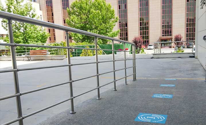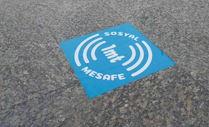 Öte yandan fizikî mesafeyi sağlamak amacıyla ortak kullanım alanlarına da geçiş işaretlemeleri yapıldı.