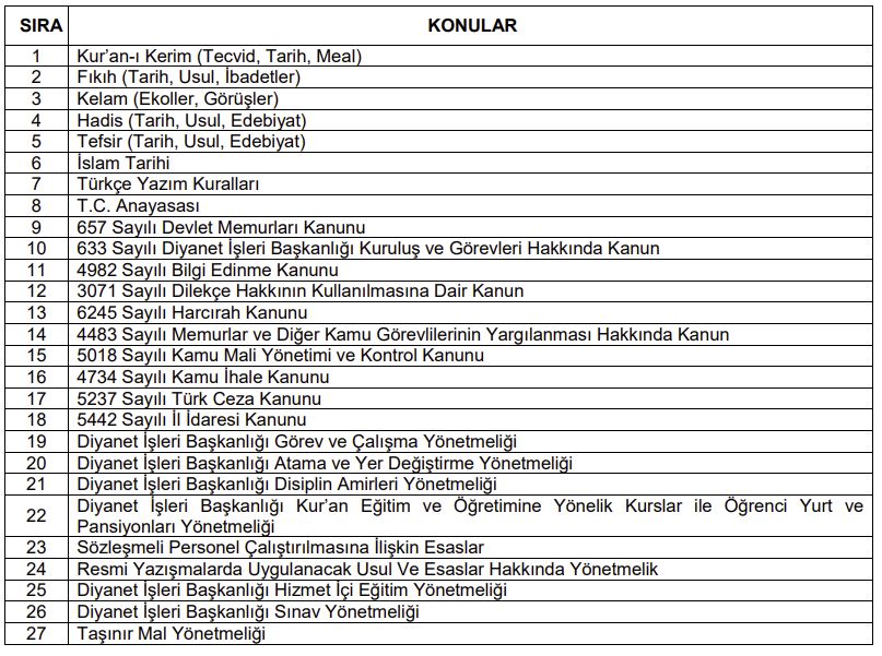 4. Yazılı sınav konuları, bu duyurunun “YAZILI SINAV KONULARI” başlığında belirtilmiştir.
