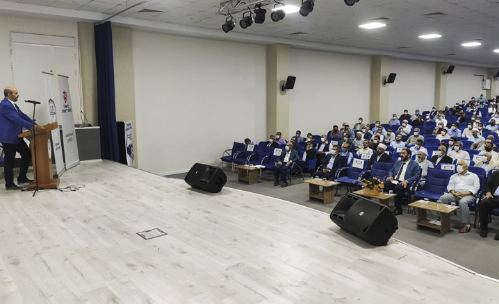 “Cami, Din Görevlileri ve Vefa” konulu konferansını vermek üzere kürsüye davet edilen Prof. Dr. İbrahim Baz ise “Hocalarımızla böylesi bir konferansta buluşmak benim için çok güzel bir duygu. Her birimizin vazifemizle ilgili anıları var. Bu anılarımızla tecrübe kazanıyoruz. Tecrübelerimizle hayatımızı şekillendiriyoruz. Bölgemiz Mem-u Zin’in şehridir. Buralar ilahi aşkın şehridir. Maneviyatın zirvede olduğu bir bölgede yaşıyoruz. Bunun kıymetini bilip ona göre hizmet etmemiz gerekiyor.” şeklinde konuştu.