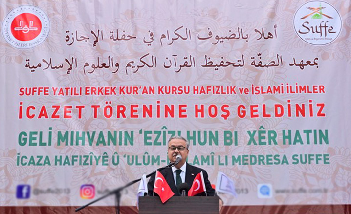 Sur İlçe Müftülüğüne bağlı Suffe Yatılı Erkek Kuran Kursu’nda Hafızlık ve İslam İlimlerini okuyarak mezun olan 136 öğrenci için "İcazet Merasimi" düzenlendi.