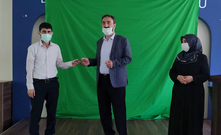 Diyarbakır İl Müftülüğü konferans salonunda koronavirüs tedbirleri eşliğinde düzenlenen törende İl Müftüsü Yavuz Selim Karabayır, dereceye giren gençleri tebrik ederek ödüllerini verdi.