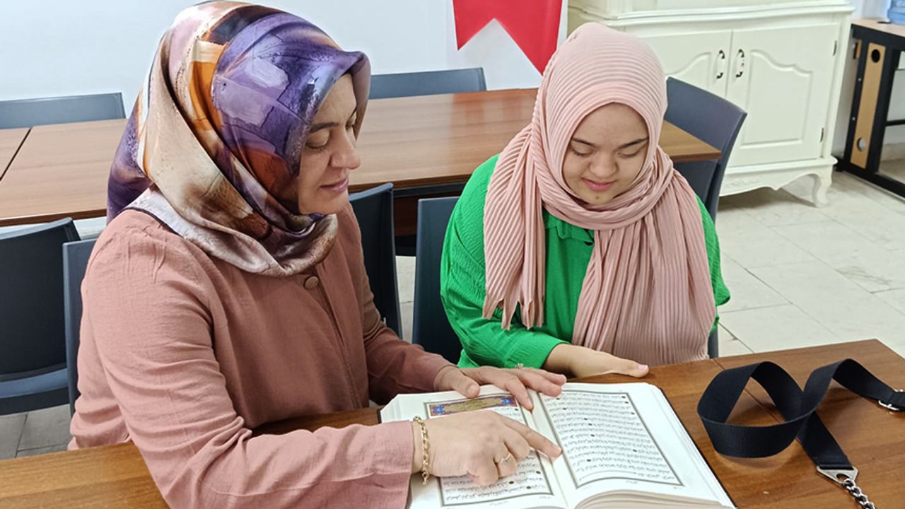 19 yaşındaki Şevval, 4 yıl önce Engelli Koordinatörü Hanife Turguteli ile tanışarak Kur’an eğitimine başladı. Kursun manevi atmosferinde yavaş ama emin adımlarla ilerleyen Şevval, hem Kur’an-ı Kerim okumayı hem de çeşitli etkinliklerle dini bilgilerini geliştirdi.