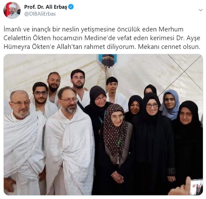 Erbaş, 2019 yılı hac mevsiminde merhum Dr. Ayşe Hümeyra Ökten'ni Arafat'taki çadırında ziyaret etmişti.