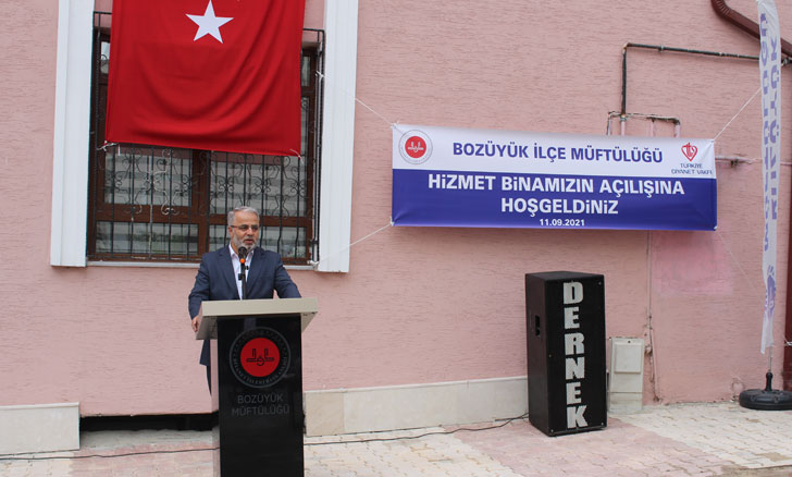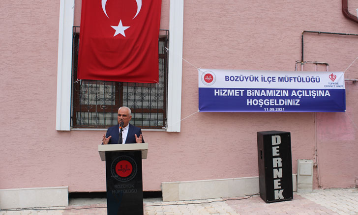 Hizmet binası hakkında bilgilendirmede bulunan Bozüyük İlçe Müftüsü Mustafa Topal da "Din görevlileri olarak, Bozüyük'te halkımızla iç içe görev yapıyoruz. Onların ihtiyaçlarında her zaman yanlarındayız. Bütün din görevli arkadaşlarımız hep birlikte fevkalade hizmet verdiler. Her zaman da desteğimiz devam edecektir. Binamızın tahsisi döneminde bizden yardımlarını esirgemeyen, başta Bozüyük halkı olmak üzere herkese teşekkür ediyorum. Müftülük personelimizle omuz omuza vererek binamızı tamamladık. Bozüyük halkının hizmetine hep birlikte sunuyoruz. Herkese hayırlı olsun." ifadelerini kullandı.