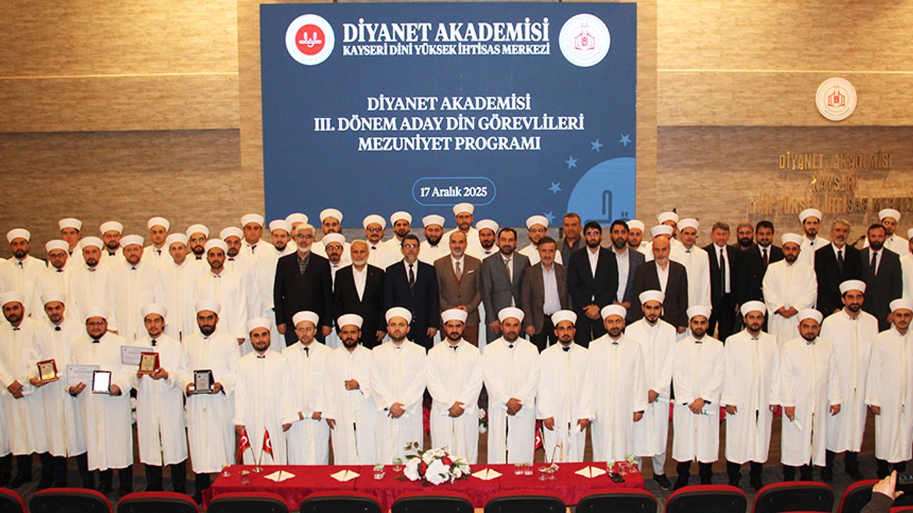 Diyanet İşleri Başkanlığı kadrolarına imam-hatip olarak ilk defa atanacak 73 aday din görevlisi, Diyanet Akademisi Kayseri Dini Yüksek İhtisas Merkezi’ndeki 8 aylık akademi eğitimini başarıyla tamamladı.