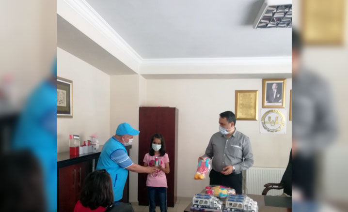 Minik öğrencilerin bağışını Türkiye Diyanet Vakfı adına Dulkadiroğlu İlçe Müftü Vekili Cumali Deniz kabul etti.