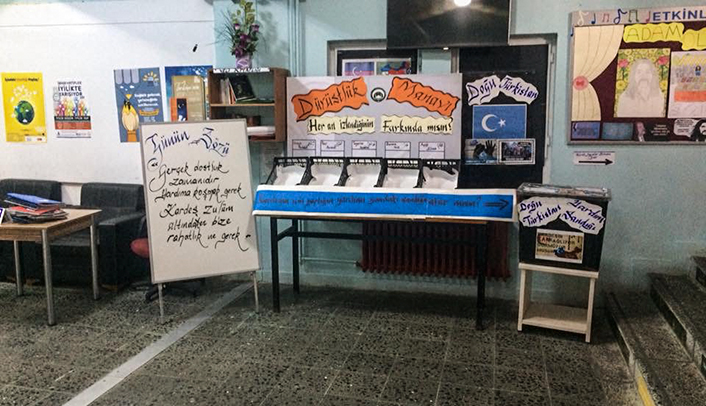 Doğu Türkistan halkının çektiği sıkıntıları hafifletebilmek ve bir nebze olsun katkıda bulunabilmek amacıyla Rize Mahmut Celalettin Ökten İmam Hatip Ortaokulu öğrencileri, okul koridorunda ‘Dürüstlük Manavı’ adıyla stant açtılar.