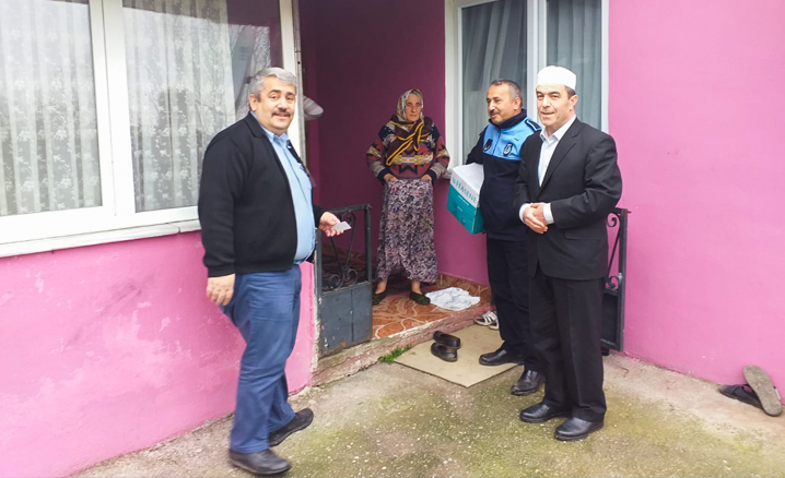 Gölyaka İlçe Müftülüğü din görevlileri, salgın nedeniyle sokağa çıkmaları sınırlandırılan yaşlı ve hasta vatandaşları evlerinde ziyaret ediyor, ihtiyacı olanlar için alışveriş yaparak evlerine bırakıyor.