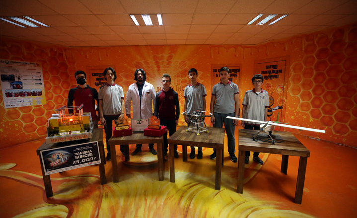 Fen bilimleri öğretmeni Devrim Ertuğrul koordinesindeki 10 öğrenci, 11 ay boyunca 4 kategoride 6 proje tasarladı.