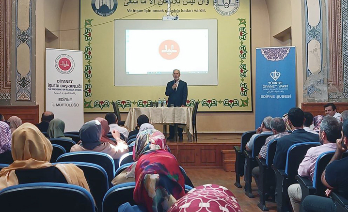 Fatih Sultan Mehmet 4-6 Yaş Kur’an Kursu Konferans Salonu’nda gerçekleştirilen toplantıda Edirne İl Müftüsü Alettin Bozkurt, İl Müftü yardımcıları, ilçe müftüleri, Müftülük personeli ve din görevlileri hazır bulundu.