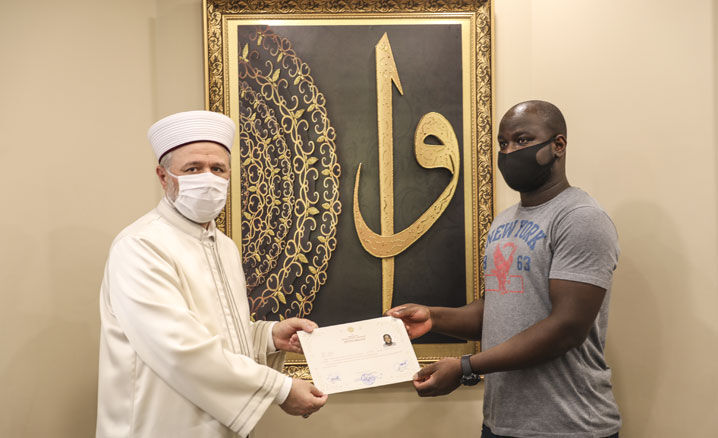 İl Müftüsü Prof. Dr. Şahin Güven öncülüğünde gerçekleştirilen merasimde Kelime-i Şehadet getiren Togo vatandaşı Colanı, Müslüman oldu.