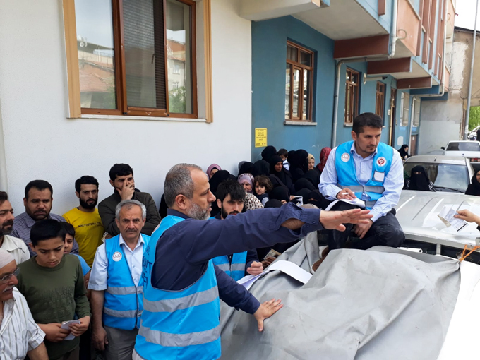 Diyanet Vakfı çalışanları ve gönüllüleri ile İl Müftülüğü personelinden oluşan ekip, Suriyeli ailelere un ve diğer ihtiyaçlarını gidermeleri amacıyla nakdi yardım dağıtımı gerçekleştirdi.