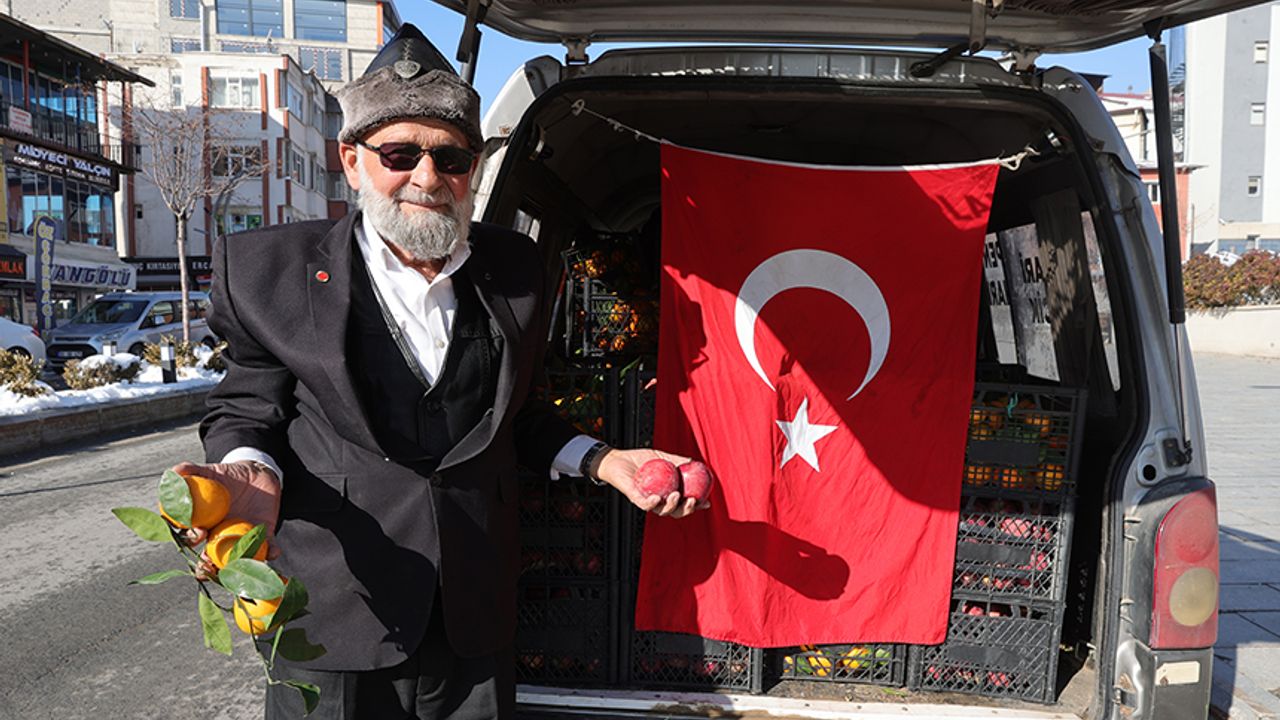Yurt içi ve yurt dışında operasyonlara katılan askerlere elma götürmesi nedeniyle "Elmacı Dede" olarak tanınan Yılmaz, bahçesinden topladığı elmaların ve Dörtyol'da Kaymakamlık ve Belediyenin destekleriyle toplanan mandalinaların bulunduğu aracıyla Hakkari'ye geldi.