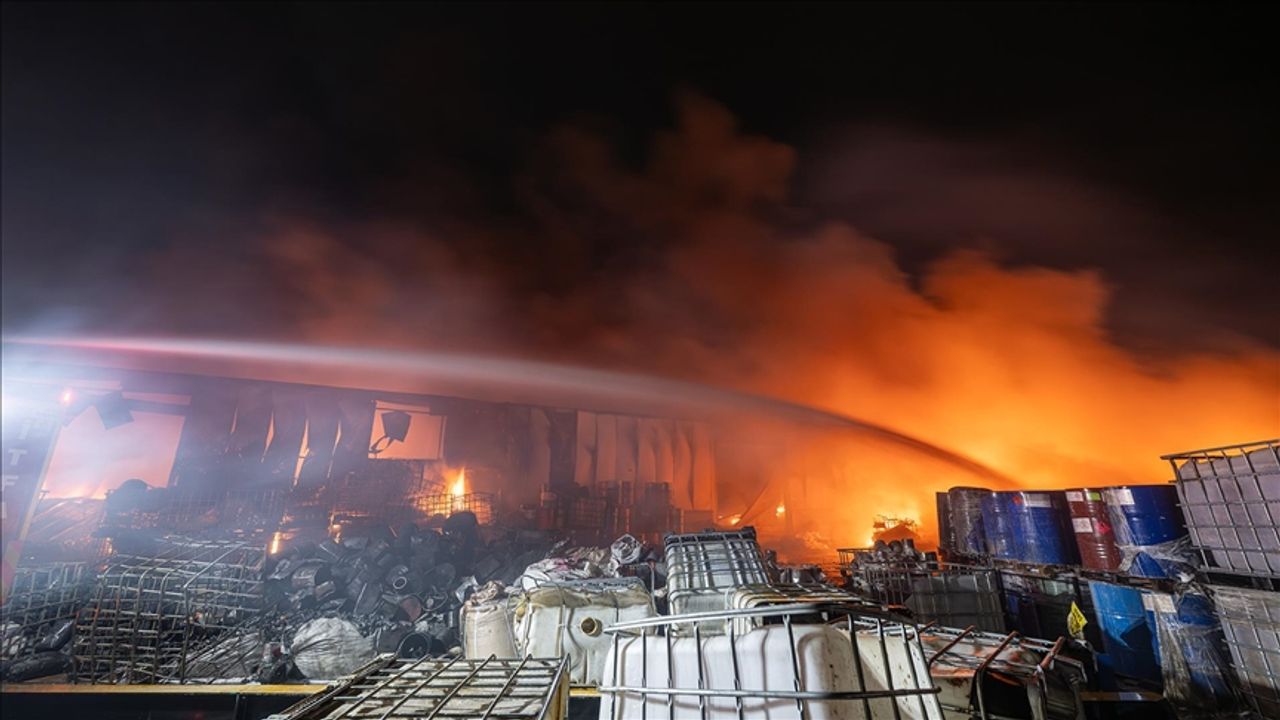 Elmadağ'da Hasanoğlan Organize Sanayi Bölgesi'nde gece saatlerinde, geri dönüşüm fabrikasında henüz belirlenemeyen nedenle yangın çıktı.