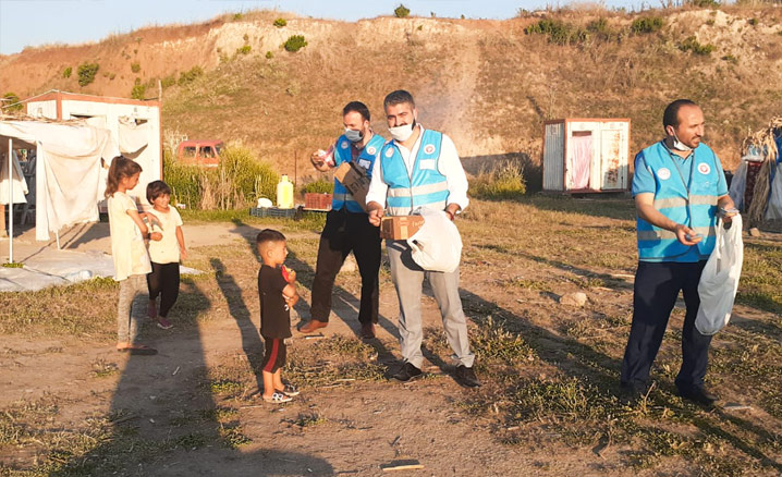 Yunusemre İlçesi Üçpınar Mahallesi'nde mevsimlik tarım işçilerini ziyaret eden din görevlileri ve Türkiye Diyanet Vakfı gönüllüleri, Manisa İl Müftülüğü ve Türkiye Diyanet Vakfı Manisa Şubesi iş birliğinde hazırlanan gıda yardımı kolilerini işçi ailelerine ulaştırdı.