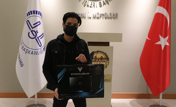 Kayseri İl Müftülüğü, eğitimine uzaktan devam eden Eskişehir’de Bilgisayar Mühendisliği birinci sınıf öğrencisi Barış Çeri’ye dizüstü bilgisayar hediye etti.