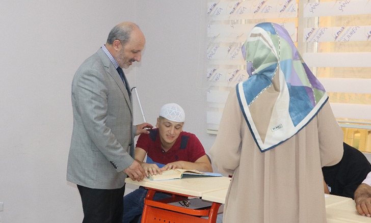 Şanlıurfa İl Müftülüğü ve Büyükşehir Belediyesi iş birliğiyle Büyükşehir Engelli Koordinasyon Merkezinde, görme ve zihinsel engelli öğrencilere Kur’an-ı Kerim dersleri veriliyor.