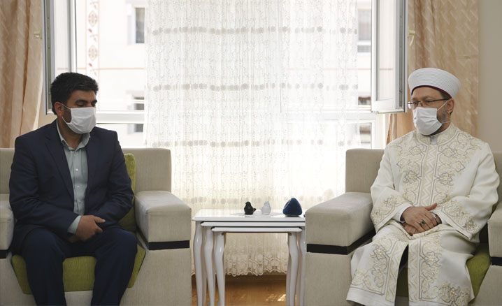 Diyanet İşleri Başkanı Prof. Dr. Ali Erbaş, Ankara'nın Etimesgut ilçesinde ezan okunduğu sırada yüksek sesle müzik dinledikleri için uyardığı 3 kişi tarafından bıçaklanarak öldürülen Barış Çakan'ın ailesine taziye ziyaretinde bulundu.