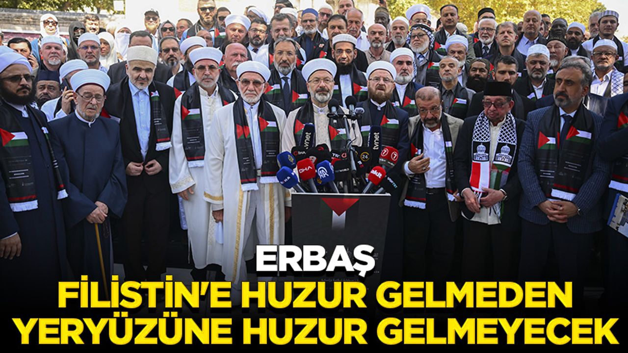 Diyanet İsleri Başkanı Erbaş, Filistin davasının bir iman, ahlak ve vicdan meselesi olduğuna vurgu yaparak "Zira Filistin'e huzur gelmeden yeryüzüne huzur gelmeyecek. Filistin coğrafyasını bir kene gibi yapışan bir mikrop gibi bulaşan zalimlerden kurtarmak zorundayız. Bunun için bütün Müslümanlar, bütün Müslüman devletler tüm vicdan sahipleri bir araya gelerek zalimleri durduracak ciddi kararlar almak, yaptırımlar uygulamak zorundayız." diye konuştu.