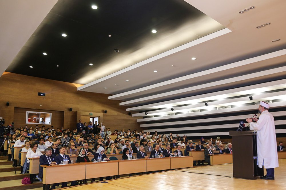 Başkan Erbaş, Muğla Sıtkı Koçman Üniversitesi Fen Edebiyat Fakültesi Şehit Polis Yaşar Özlem Amfisi'nde öğrencilerle buluştu.