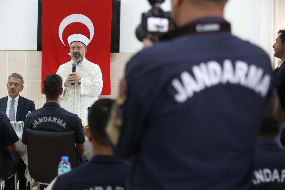 Başkan Erbaş, yemeğin ardından yaptığı duada, "Allah’ım askerlerimizle, polislerimizle birlikteyiz. Birliğimizi, beraberliğimizi daim eyle Allah’ım. Polislerimize, askerlerimize yapmış olduğu faaliyetlerde, işlerde yardım eyle Allah’ım. Onları her türlü kazalardan, belalardan, şerlerden, kötülüklerden muhafaza eyle Allah’ım. Teröristlerin kötülüklerinden, düşmanların, hainlerin, hasetçilerin kötülüklerinden askerlerimizi, polislerimizi, komutanlarımızı muhafaza eyle Allah’ım.