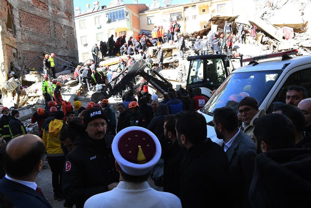 Erbaş ve beraberindeki heyet, depremde yıkılan binalardaki çalışmaları yerinde takip ederek göçük altında kalan yakınlarını bekleyen gözü yaşlı vatandaşlarla bir araya gelerek acılarını paylaştı.