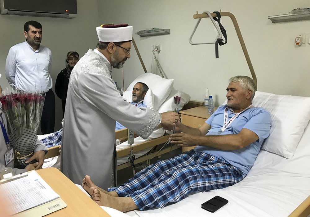 Bilgilendirmenin ardından Diyanet İşleri Başkanı Erbaş, yatarak tedavi gören hastaları ziyaret etti. Erbaş, geçmiş olsun dileğinde bulunduğu hastalara gül verdi.