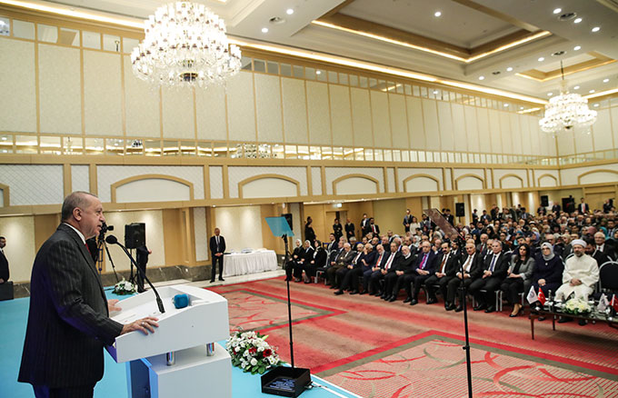 Diyanet İşleri Başkanlığının, İslam dünyası ve insanlık açısından kritik bir dönemde anlamlı bir toplantıya ev sahipliği yaptığına dikkati çeken Erdoğan, şöyle konuştu: