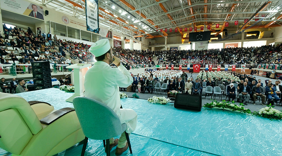 Konuşmasının devamında, Kur’an-ı Kerim'in insanlarımızın kalbini aydınlatan bir nur, hafızların da Kur’an’ın yürüyen hali olduğunu vurgulayan Vali Aydoğdu, genç hafızlara seslenerek "Sizler, Peygamber Efendimiz (sas)'in 'En hayırlınız Kur’an’ı öğrenen ve öğreteninizdir.' müjdesine nail olan kutlu kişilersiniz. Sizler, ümmet-i Muhammed’in ve bu ülkenin umudusunuz. Her biriniz, bu çağın en kıymetli emaneti olan Kur’an-ı Kerim'i yüreğinde taşıyan birer meşale olacaksınız. Unutmayınız ki: Kur’an’ı hıfzeden onun ahlakını da yüklenir. Yani sizler artık merhametin, adaletin, sabrın ve doğruluğun hafızlarısınız. Dilinizi ayet süslerse, gözünüzde haya, kalbinizde rahmet, adımlarınızda tevazu olur. Hafızlık bir lütuf ve bir sorumluluktur. Çünkü Kur’an-ı Kerim, “oku” derken ayetlerle birlikte hayatı okumayı emreder. Bu mukaddes yolculukta, her bir harfi sevgiyle öğreten hocalarımıza, sabırla, inançla evladını bu yola adayan ailelerimize ve bu şehrin maneviyatına omuz veren tüm gönül dostlarına yürekten teşekkür ediyorum." ifadelerini kaydetti.