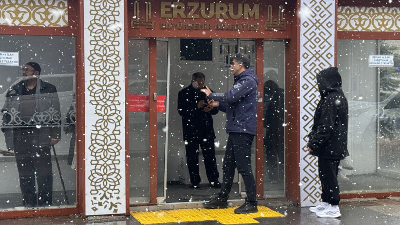 Kışın uzun ve çetin geçtiği Erzurum'da sabah saatlerinde kar yağdı.